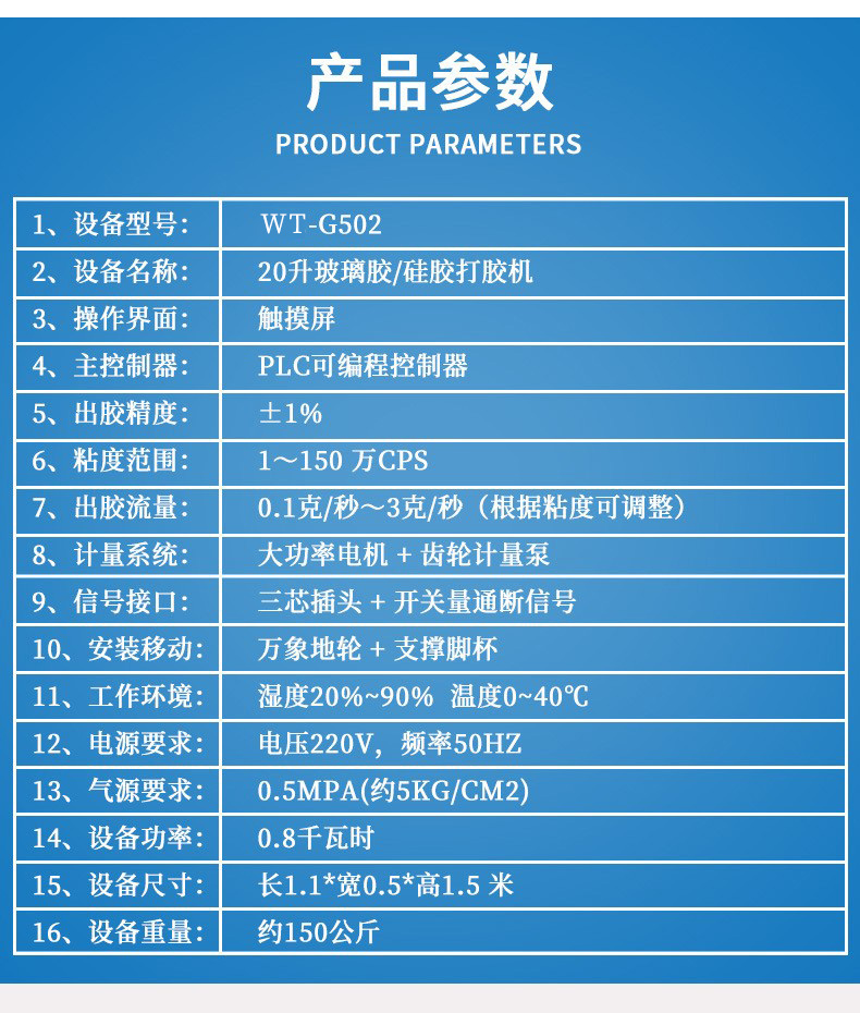 此款玻璃胶打胶机为大功率齿轮泵备料设备,适用于5加仑(20升)桶装玻璃胶、硅橡胶等高粘度胶水,户外摄像头、钣金外壳等都可以用它来打胶,广泛应用于通讯数码、光伏新能源、家装建材等行业。