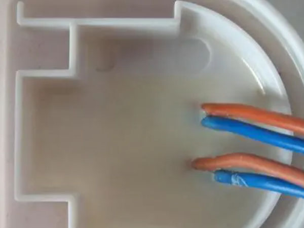 大多数低频电缆产品采用的是DG-3S胶液灌封,DG-3S胶为双组份胶,气泡产生的原因有四个:一个是在调胶的过程中需要搅拌,由于粘度较高,搅拌时会将空气搅入胶里形成气泡;二是元器件间或灌封模具之间存在狭缝、死角,灌封过程中快克未喷吹到位,从而对于狭小的区域、灌封腔的边、角部位和导线粗的部位易产生气泡;三是将调好的胶液灌至注射器内会带入气泡;四是灌胶时一次性注入过量的胶,使空气混入胶内产生气泡。